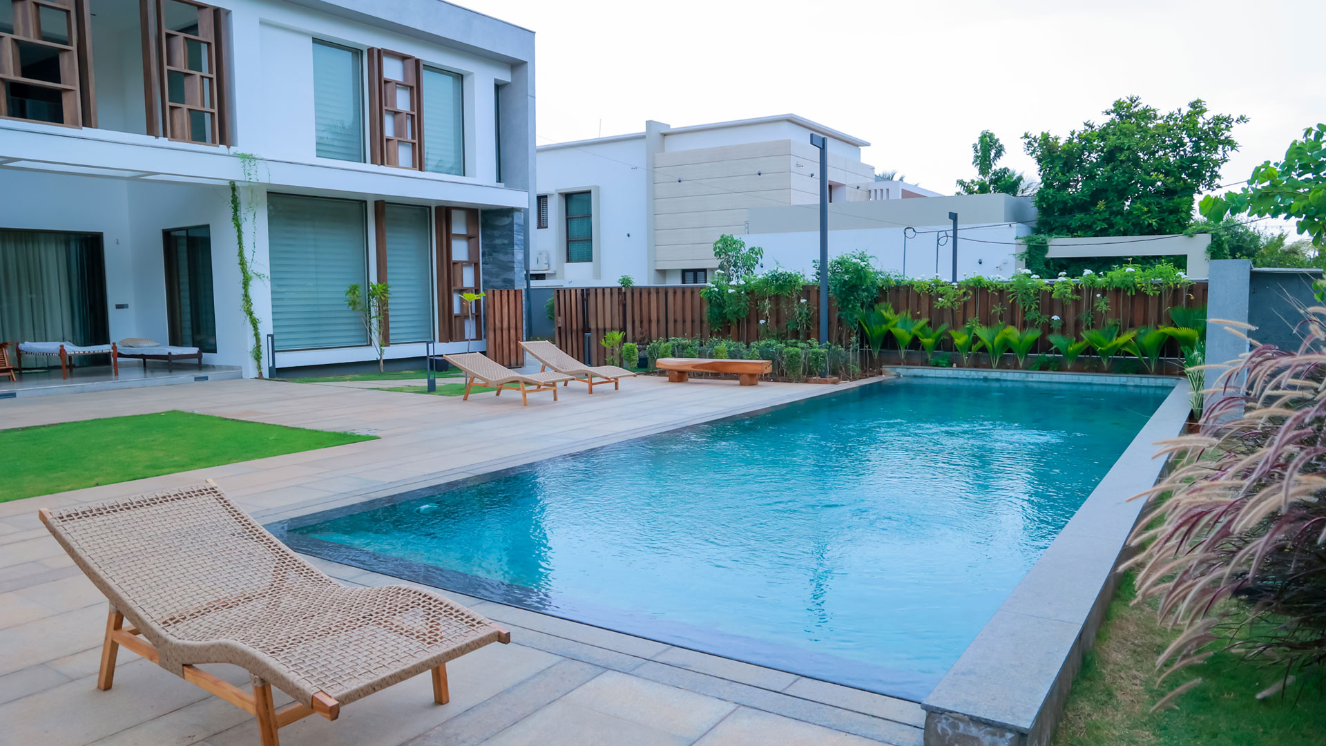 A contemporary luxury villa with elegant architecture, premium finishes, and a private pool. Designed for modern living, it reflects superior craftsmanship and thoughtful landscaping.